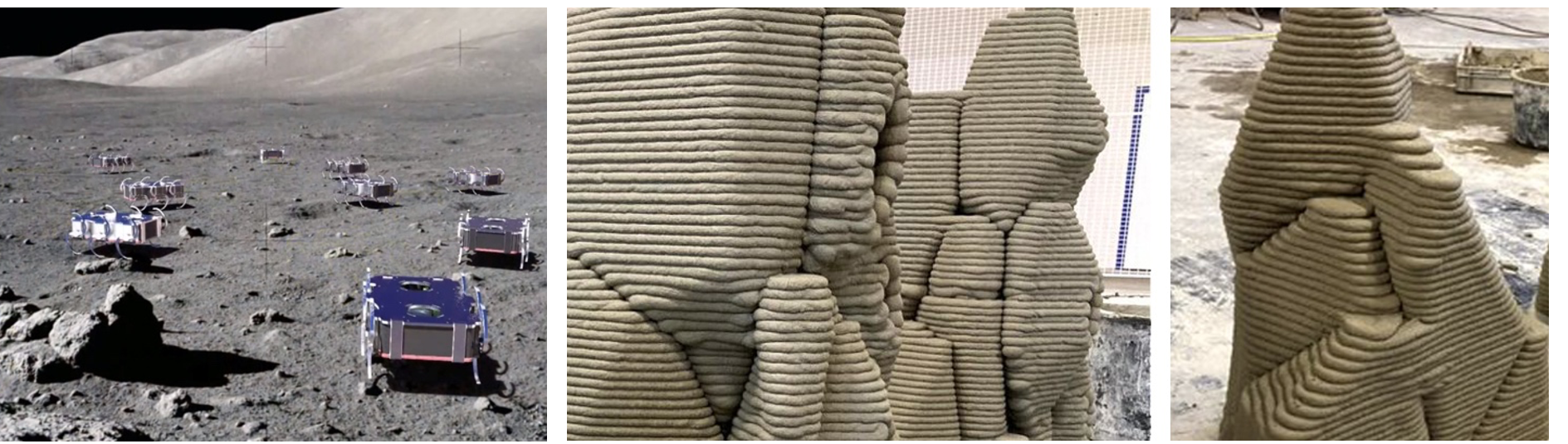 The additive D2RP process currently explored in laboratory setup using clay, silicon and thermoplastic elastomers represents the basis for the 3D printing approach with regolith-based concrete that is employed in this project. The regolith simulant, MGS-1, chosen for its availability, similar composition to 'global' basaltic soil composition, and also cheap price when ordered from https://exolithsimulants.com/collections/regolith-simulants is mixed with cement, which can be produced on Mars but infrastructure for producing it needs to be already in place (leaving the question of what would be the first structure built from open).