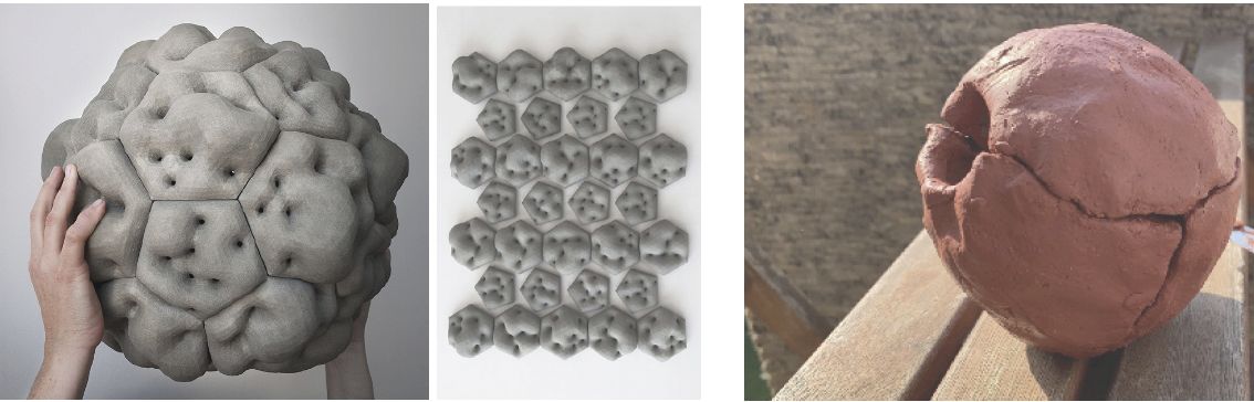 The interventions take shape in form of 0.5-1-meter diameter ‘planetoids’ placed on different locations where all living things are treated as social actors . They support the life that is already existing at the location and they also initiate new life. The ’planetoids’ are prototyped using Design-to-Robotic-Production and -Operation (D2RP&O) techniques, which are implemented in this project by means of parametric design and robotic production and operation involving 3D printing and sensor-actuator technologies. Materials are 90% wood-based biopolymer and 10% climate control sensors that are embedded in the ‘planetoid’ to collect and share data with neighbors and passers-by via wireless networks. Furthermore, D2RO techniques are implemented for the sensor-actuator systems integrated in order to track microclimates within and around the ‘planetoids’. Multiple plants grow from a single ‘planetoid’.