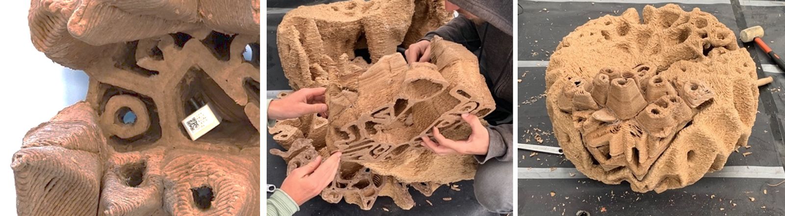 By researching a number of unique microclimates typical of ruins and intermediate areas, habitats can be developed for various animal and plant species. From an eco-philosophical point of view, all living beings are treated as equal social actors. The design relies on a multispecies urbanism in which artefacts are modelled by means of parametric design and robotically 3D printed and/or milled. This approach relies on Design-to-Robotic-Production (D2RP) techniques. Materials and techniques considered are wood, bioplastic from coffee and bamboo waste.