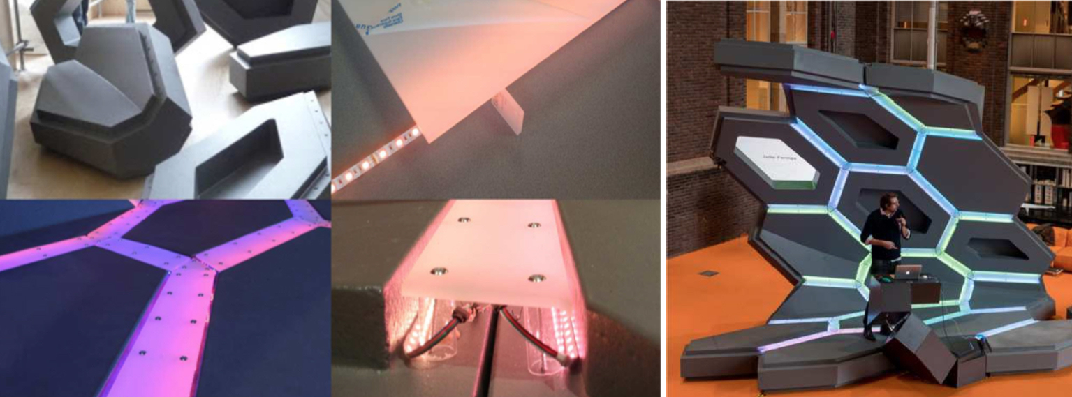 Integrated interactive lighting engages playfully with humans by following or preceding them and has been developed using Arduino and sensor-actuators. Integrated lights change intensity, color and on/off pattern depending on presence.