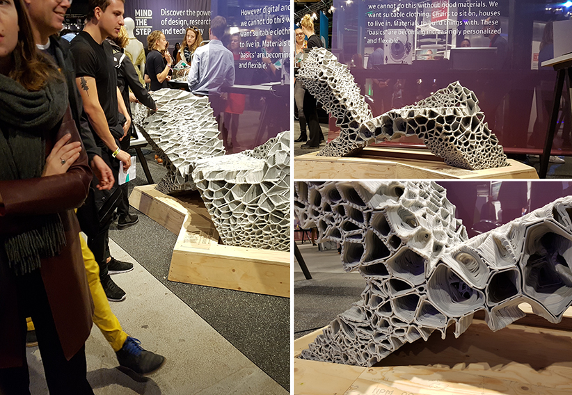 12-14 March 2019 Variable Stiffness chaise longue designed and developed at TU Delft by Henriëtte Bier and Arwin Hidding in collaboration with TUE, EPFL, and 3D-Robotprinting is exhibited at Material District, Ahoy Rotterdam