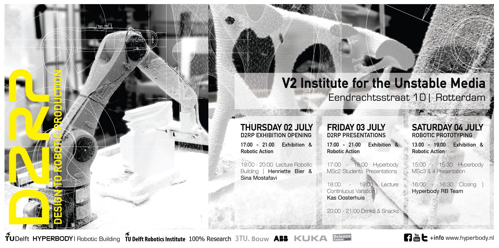 Robotic Building team participated with MSc 2 projects and robotic action in the D2RP event taking place 2015 at V2 lab in Rotterdam.